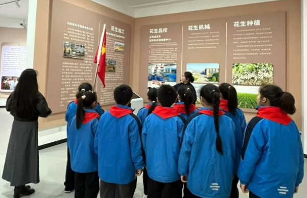 步入博览馆,仿佛翻开了一部关于花生的立体百科全书。各小队分头行动,围绕不同主题展开深度探访:从花生传入正阳的历史溯源,到传统农具的辨识体验;从优质品种的选育“密码”,到智能灌溉系统与无人机植保模型的科技展示;从花生去壳、筛选的初加工流程,到变身花生油、休闲食品的全产业链延伸;再到“正阳花生”品牌建设的奋斗历程与所获殊荣……队员们边走边看、边问边记,积极与讲解员、农技专家及企业代表互动交流,用童真的目光丈量现代农业的脉搏。
