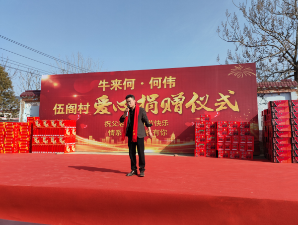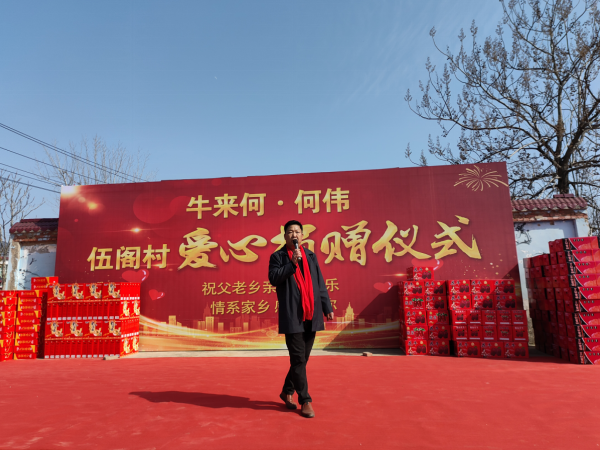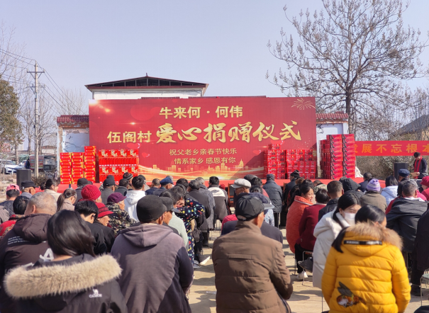正阳县伍阁村举行牛来何何伟爱心捐赠仪式