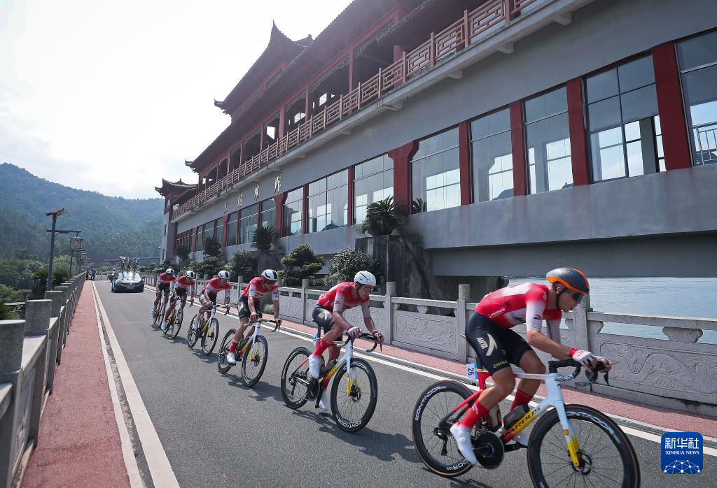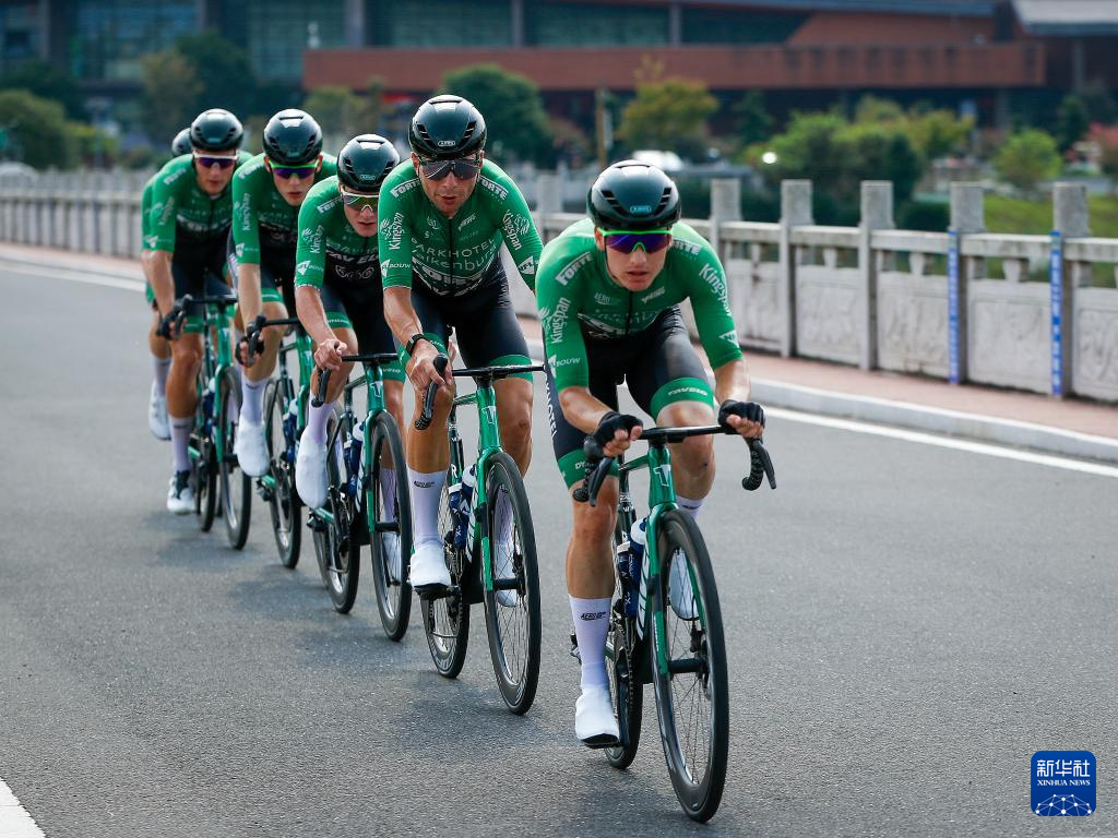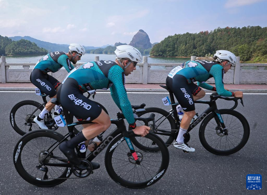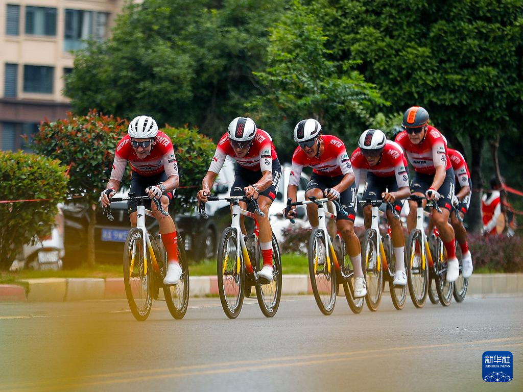 9月18日,中国安踏美碳洲际车队在比赛中骑行。