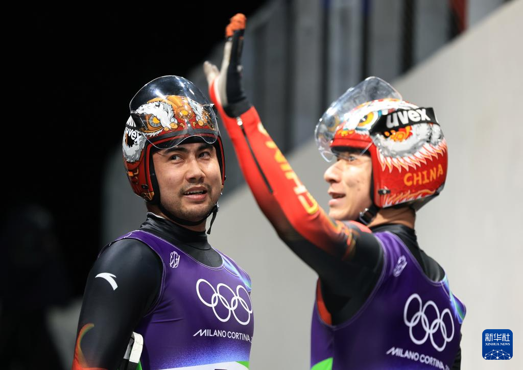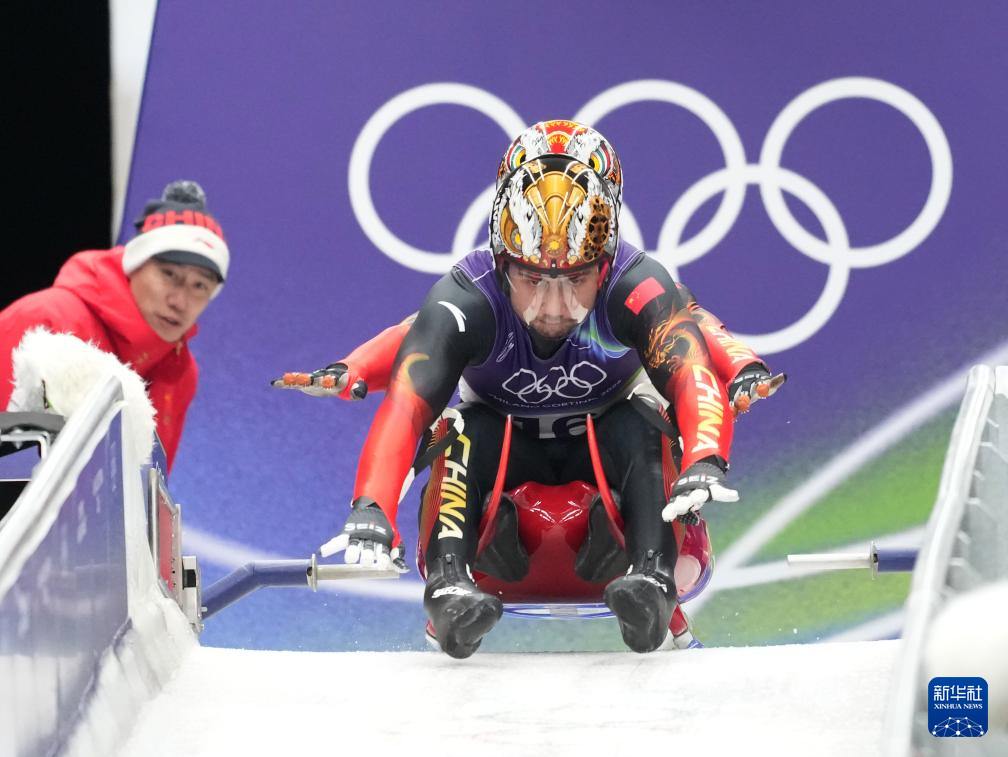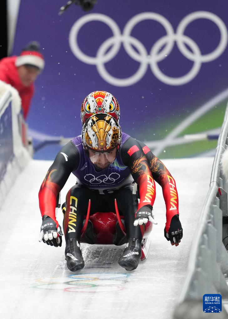 当地时间2月11日,米兰-科尔蒂纳冬奥会雪橇男子双人赛在意大利科尔蒂纳举行。