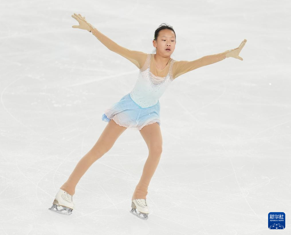 11月20日,黑龙江省冰上训练中心选手武美淇在少年甲组女子单人滑比赛中。她以96.60分的成绩获得第一名。