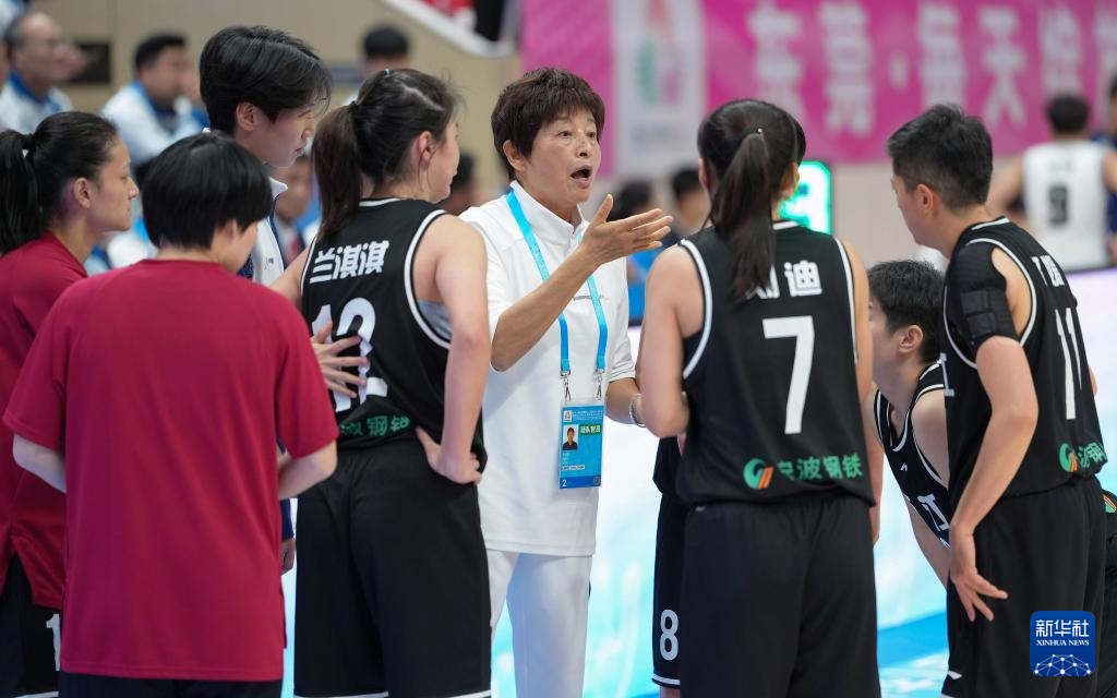 12月13日,浙江队教练员崔建国(中)在比赛间隙指导球员。