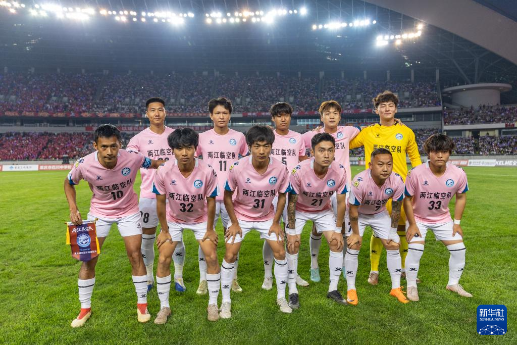 4月12日,两江临空队首发球员在赛前合影。