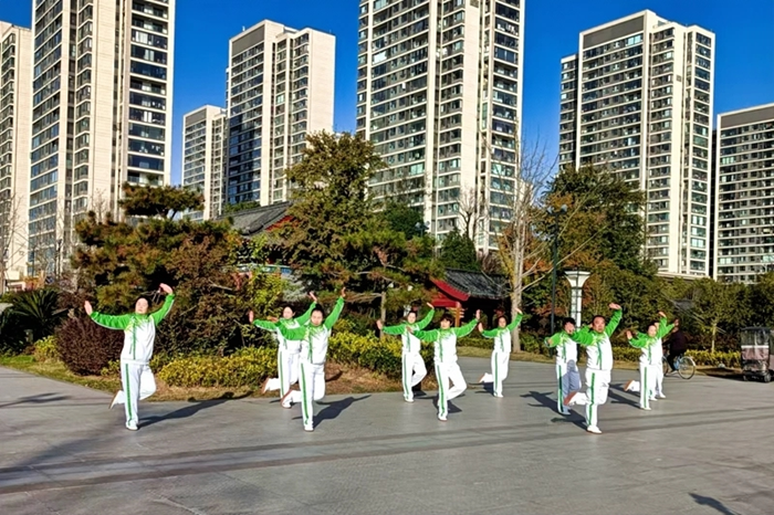 展示现场,激昂的音乐奏响活力篇章,铿锵的口令凝聚奋进力量。参演的社会体育指导员们精神抖擞、神采飞扬,动作整齐划一、规范标准。出拳刚劲有力、势如破竹,转身舒展流畅、姿态优美,将武术的刚健之风与体操的韵律之美完美融合,生动诠释了该套健身操“系统、规范、实用”的编排特点。精彩的展演不仅吸引众多市民驻足观赏、用镜头记录美好瞬间,更点燃了大家的参与热情,不少群众情不自禁跟随模仿学习,现场氛围热烈融洽。