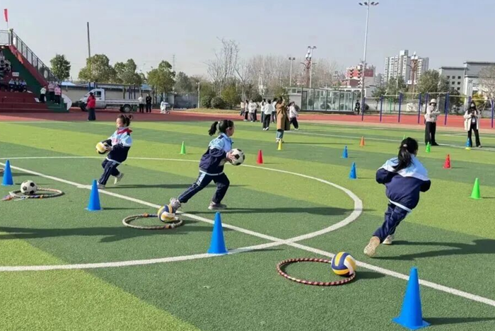 赛场之外,温情与担当温暖交织。啦啦队员们挥舞道具,用嘹亮口号为运动员呐喊助威,成为“能量补给站”。家长志愿者与现场工作人员忙碌穿梭,计时计分、场地维护、检录引导,他们各司其职、无缝配合,用细致服务筑牢保障,用辛勤付出守护比赛公平公正,成为绿茵场上一道温暖风景线。