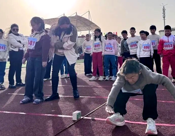 田赛区域,技巧与力量完美绽放。一分钟跳绳赛场,选手们身姿轻盈如燕,跳绳飞速旋转,划出灵动弧线,“嗒嗒”声与加油声共振,见证少年对速度与耐力的追求。立定跳远赛场,运动员们蓄势待发,助跑、蹬地、腾空、落地,动作干脆利落,惊人爆发力与弹跳力引来全场欢呼,每一次超越都成为高光时刻。
