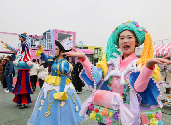 值得一提的是,园区重金打造的新春演艺矩阵成为一大亮点,各类沉浸式表演轮番上演,让游客沉浸式感受新春的欢乐氛围。国家级非物质文化遗产“火龙钢花”惊艳亮相,1500多度的铁水被匠人奋力击打,化作漫天星火,赤膊汉子手舞巨龙在火海中腾跃,呈现出“人在龙中舞,龙在火中飞”的震撼景象,让游客近距离感受非遗技艺的千年魅力;来自俄罗斯的穆特玛特舞团带来热情奔放的异域舞蹈,舞步轻盈灵动,尽显异国风情;花美男组合与女团的精彩演艺则点燃全场热情,劲歌热舞间传递出青春活力,引发阵阵欢呼。